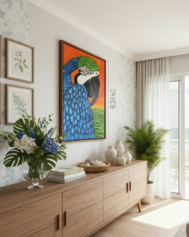 Minha primeira obra vendida foi a pintura de um papagaio. Foi um momento simbólico, pois reafirmou minha conexão com a natureza e as aves, que são centrais na minha produção.