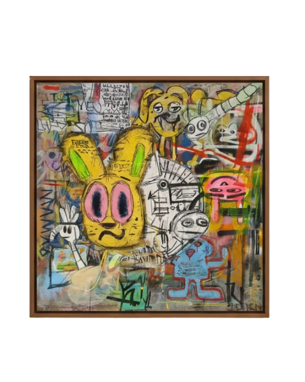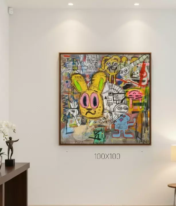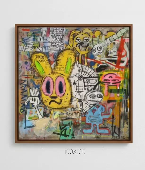 Uma explosão de formas, cores e energia! “Apolapctico” do artista Douglas Gomes é uma obra impactante que captura o caos vibrante da arte urbana em uma tela. Com personagens expressivos e uma composição dinâmica, esta peça é um convite para mergulhar em um universo único e cheio de atitude.