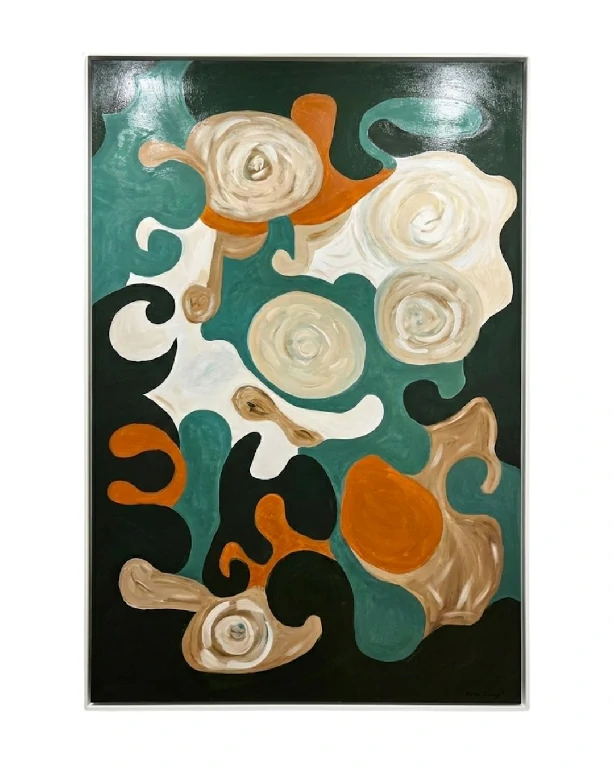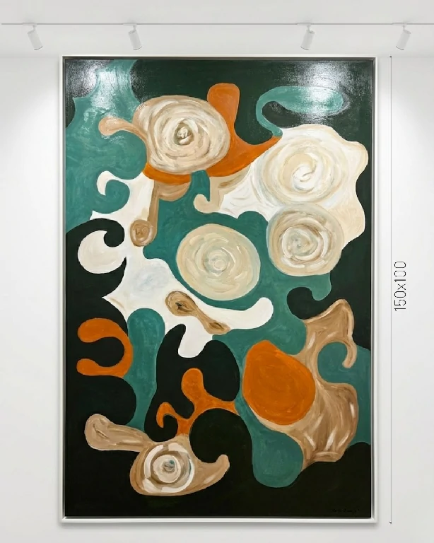 Na obra “Campo de Rosas”, a artista plástica Adriana D’Ferraz propõe uma subversão da natureza-morta tradicional, transportando o espectador para um universo de abstração biomórfica. Com dimensões imponentes (150x100cm), a tela não apenas ocupa o espaço físico, mas estabelece um diálogo vibrante através de formas que parecem estar em constante mutação.