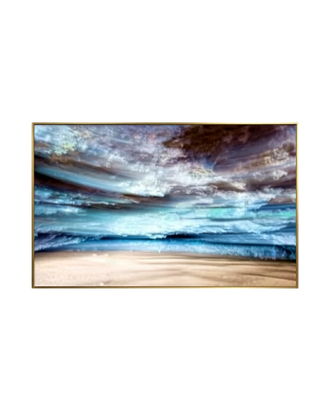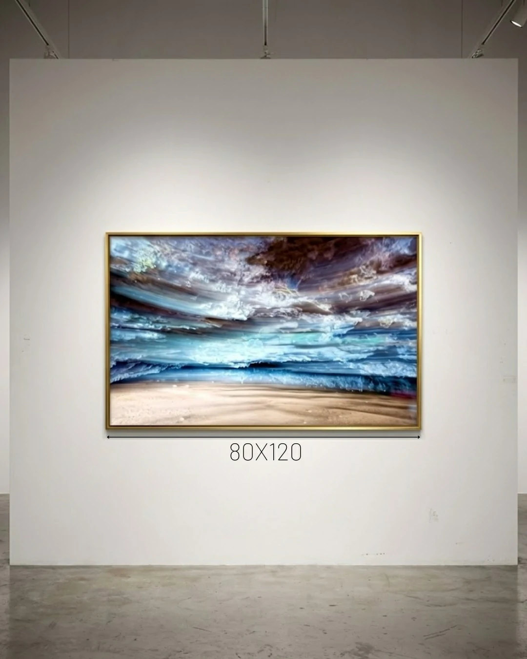 Esta obra apresenta uma exploração cativante de luz, textura e cores dentro da caverna Maniniholo na Ilha de Kaui no Havaí. Os padrões dinâmicos das formações rochosas evocam uma sensação de movimento, incentivando os espectadores a mergulhar nas profundezas dessa maravilha natural. Tons frios de azul e cinza contrastam com o calor do chão arenoso, criando uma atmosfera serena, mas envolvente. Ideal para realçar qualquer ambiente, esta peça serve como um ponto focal marcante que convida à contemplação e à intriga.