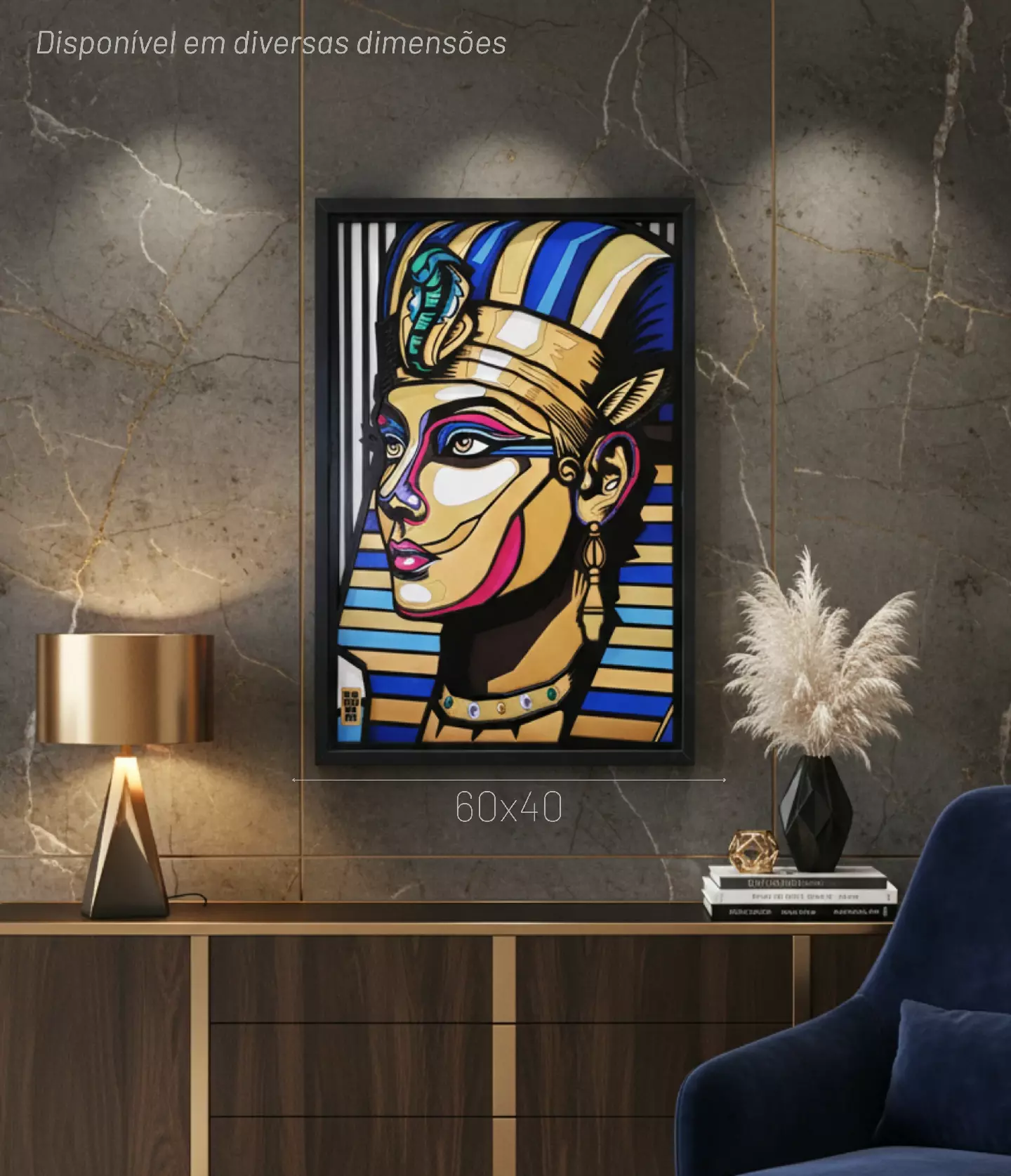É uma obra que resgata o misticismo da arte egípcia e o injeta com a energia da arte urbana contemporânea. Uma peça que irradia imponência e sofisticação.