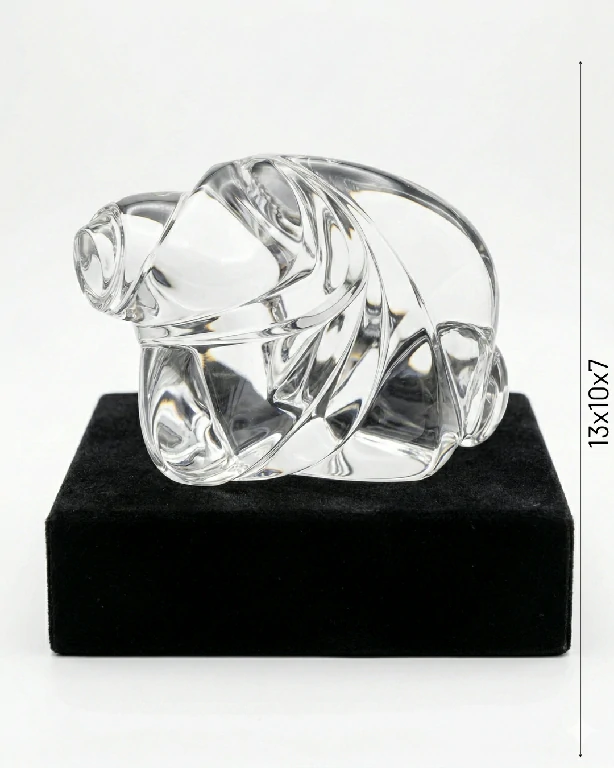 • Massa e Transparência: A densidade da obra — ultrapassando um quilograma de mineral puro — estabelece um contraste fascinante com sua transparência. O artista consegue manter a clareza do cristal mesmo nas zonas de maior espessura, demonstrando um domínio técnico excepcional no polimento e na preservação da integridade interna do quartzo.