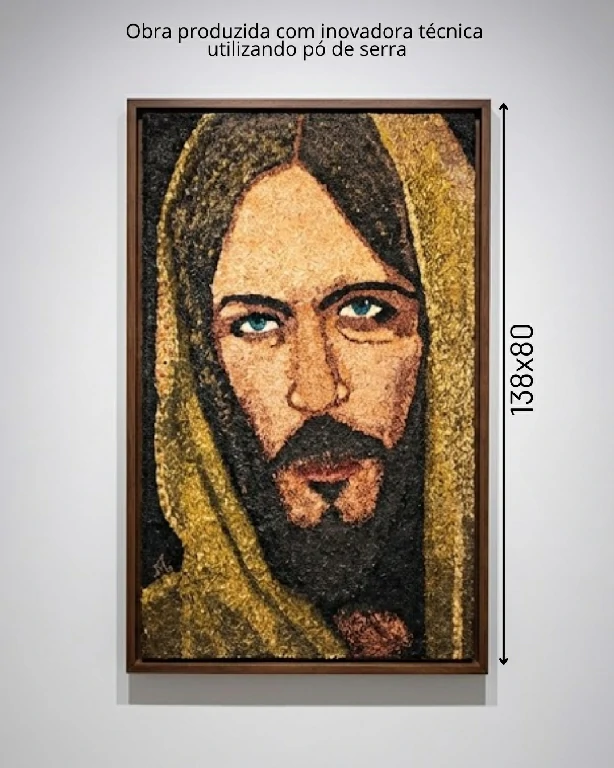 A escolha do pó de serra como elemento primordial não é meramente estética, mas uma declaração de renovação. Através desta técnica, a artista constrói a imagem por meio de camadas de texturas, conferindo ao rosto de Cristo uma densidade quase viva.