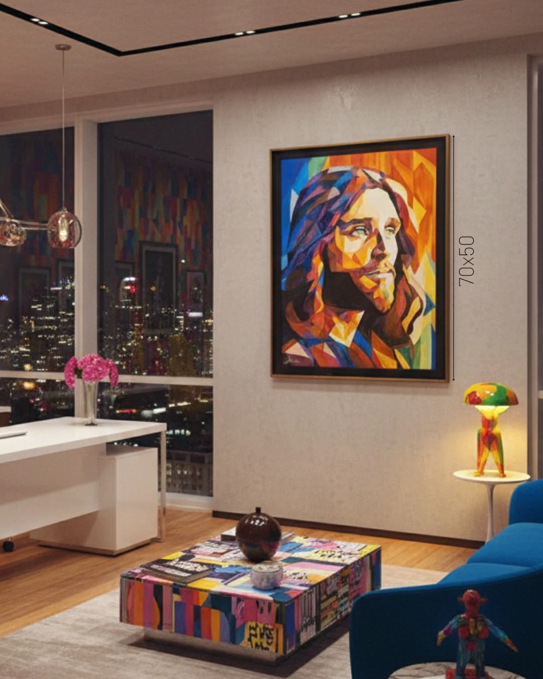Esta obra é ideal para colecionadores que buscam uma peça que dialogue com a fé, mas que também se destaque como um objeto de design e arte moderna. Ela desmistifica a distância do sagrado, aproximando a figura de Jesus da estética vibrante do século XXI. É uma peça que exige atenção e irradia uma energia jovem e revigorada.