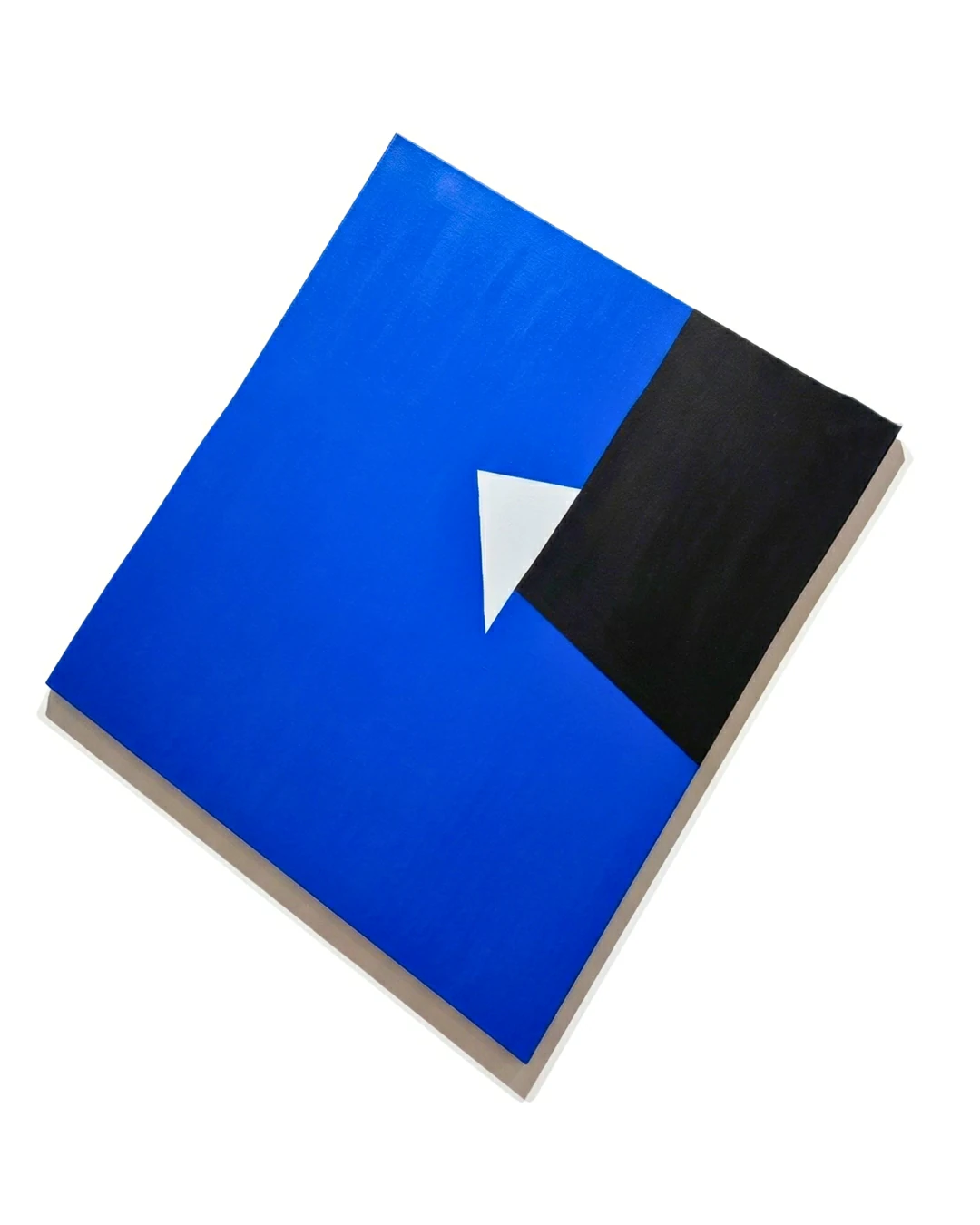 A obra Recorte BIC, de Marcelus Freschet, é uma síntese primorosa da trajetória multidisciplinar de um criador que transita com fluidez entre a arquitetura, o design e as artes plásticas. Com dimensões de 100 cm x 90 cm e executada em metacrilato, a peça reflete o rigor estrutural de sua formação como arquiteto, agora aplicado à construção de paisagens imaginárias puramente geométricas. Através do uso de cores vibrantes e contrastes marcantes — como o azul profundo que evoca o nome da obra e a sobriedade do preto e branco — Freschet organiza o plano visual de maneira a equilibrar o peso das formas com a leveza da composição contemporânea.