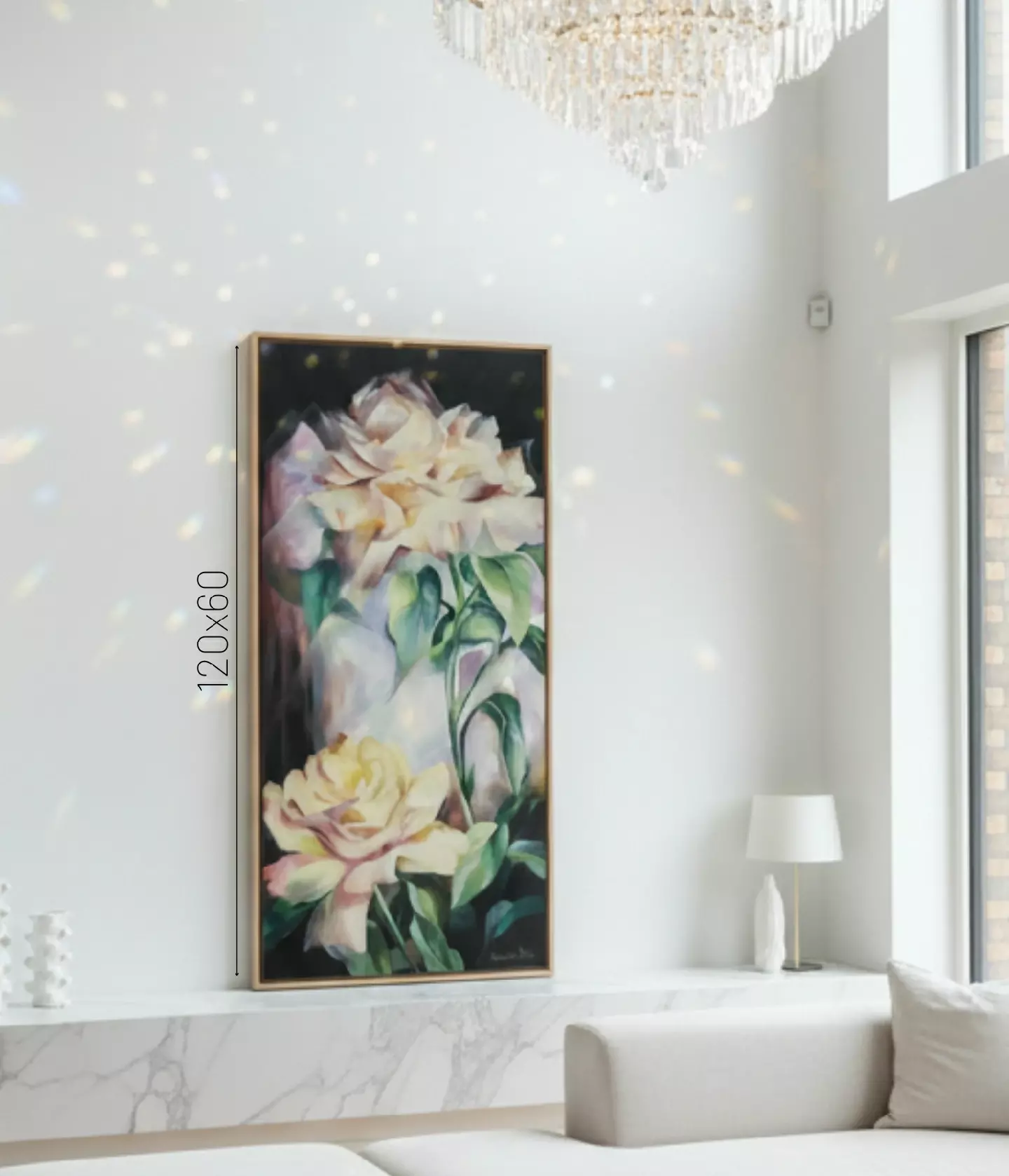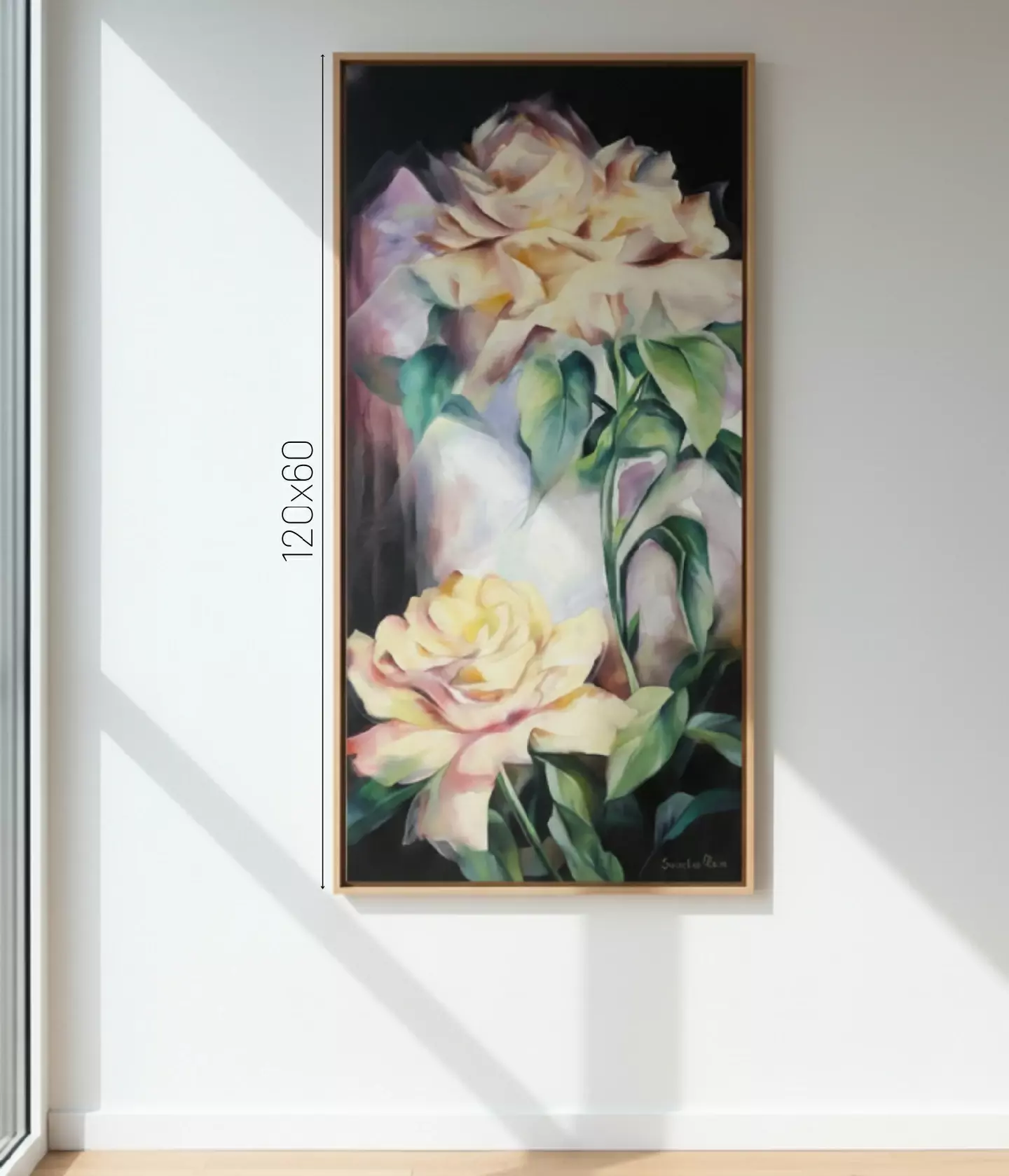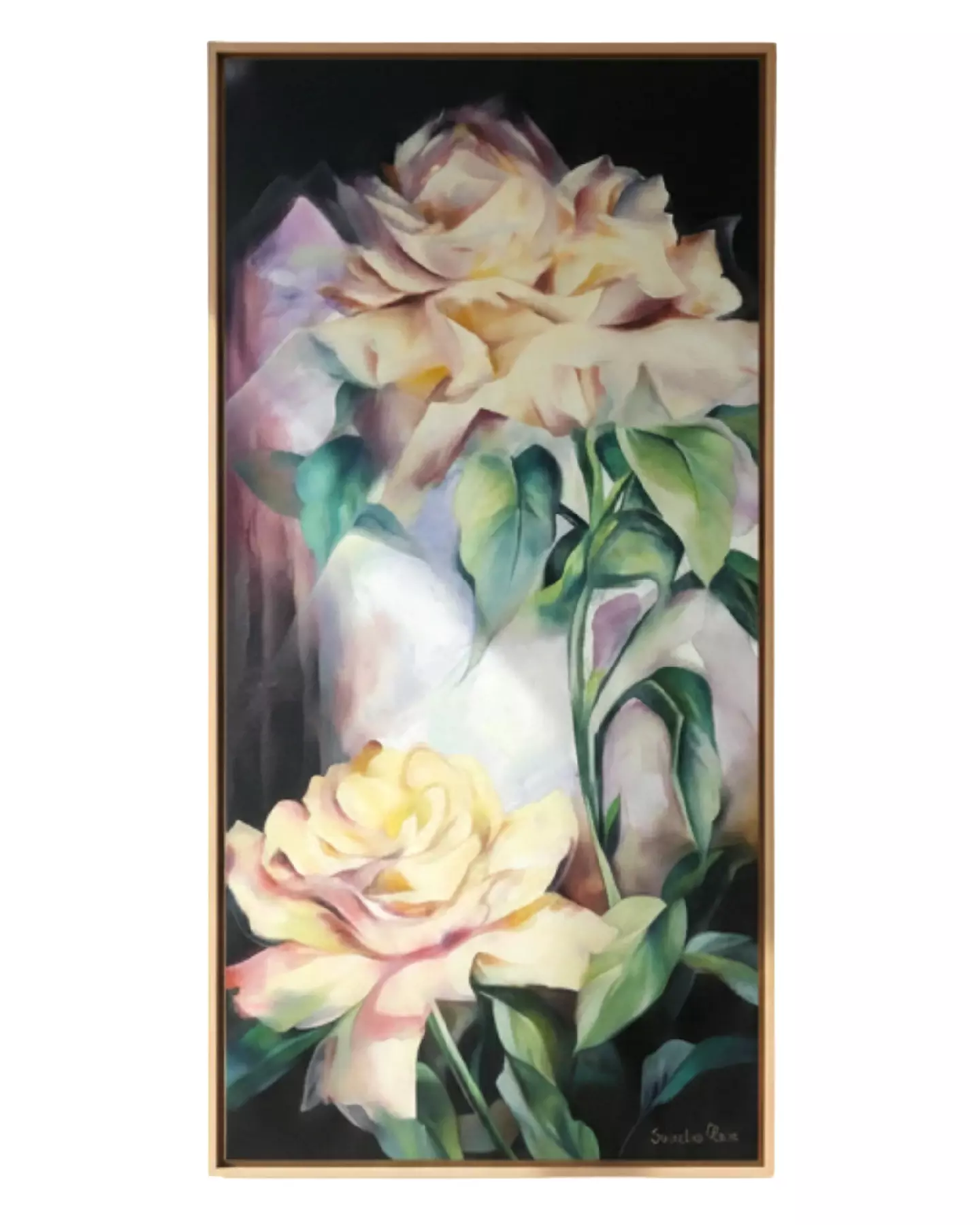 Técnica Impressionista: A artista emprega uma técnica que mistura o figurativo com toques impressionistas, especialmente na representação das flores, onde as pinceladas são soltas e sugerem a textura e o perfume, em vez de detalhá-las rigidamente. Isso confere à obra uma sensação de movimento e leveza.