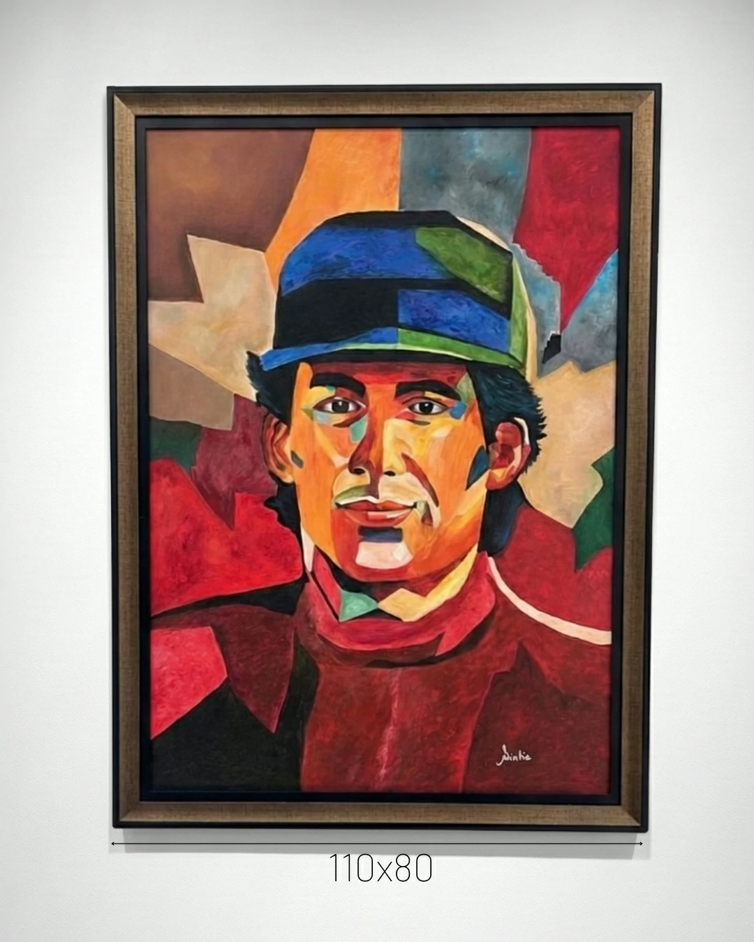 Na obra “O Melhor de Todos os Tempos” – 110x80cm, Sintia Bogo imortaliza a figura do nosso amado piloto. A pintura em acrílico não busca uma reprodução fotográfica, mas sim a captura da energia, da determinação e do patriotismo que o piloto simbolizava. O uso de formas geométricas para reconstruir o rosto sugere uma personalidade multifacetada: a precisão técnica do piloto aliada à sensibilidade do homem.