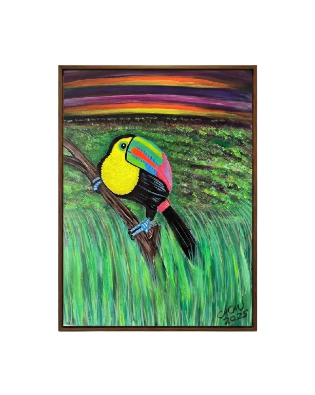 Esta obra não é apenas decorativa; ela é uma afirmação de força e brasilidade, ideal para quem deseja um toque de arte forte e colorida em qualquer ambiente, seja ele moderno ou rústico.