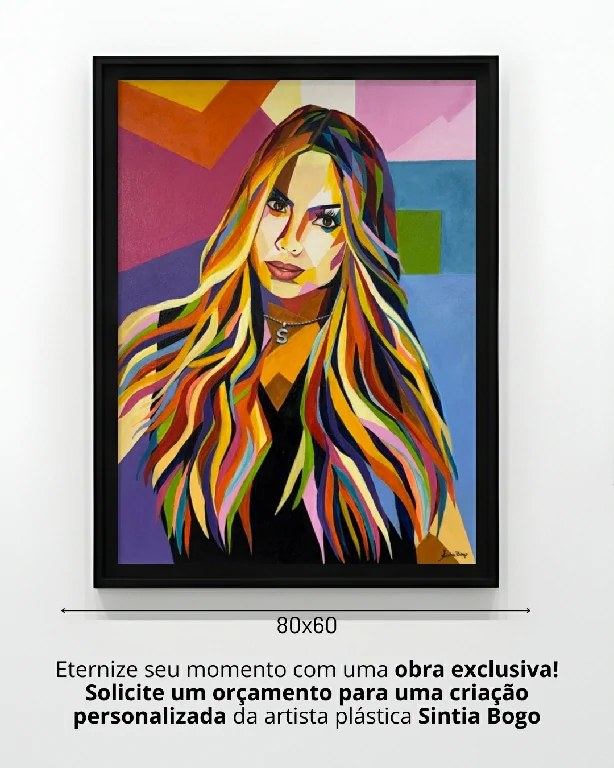 Esta obra é uma vitrine do poder expressivo de Sintia Bogo, demonstrando como sua técnica vibrante transforma retratos em peças de design contemporâneo. Ao encomendar uma obra personalizada, você não recebe apenas uma pintura, mas uma interpretação artística que imortaliza sua história com o máximo de estilo.