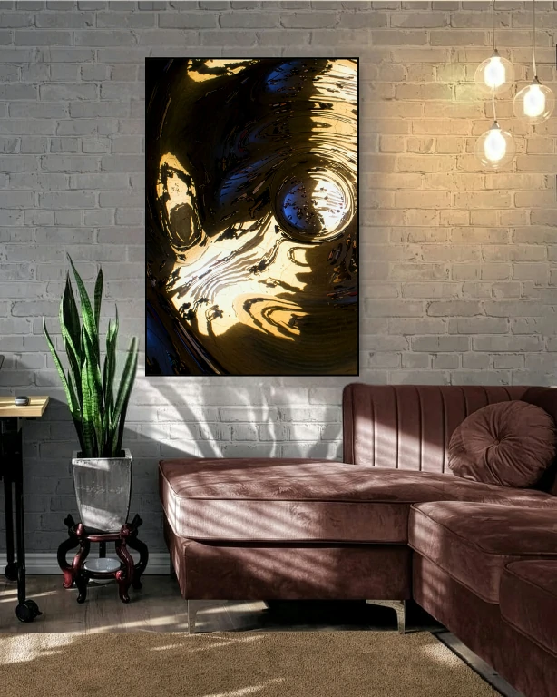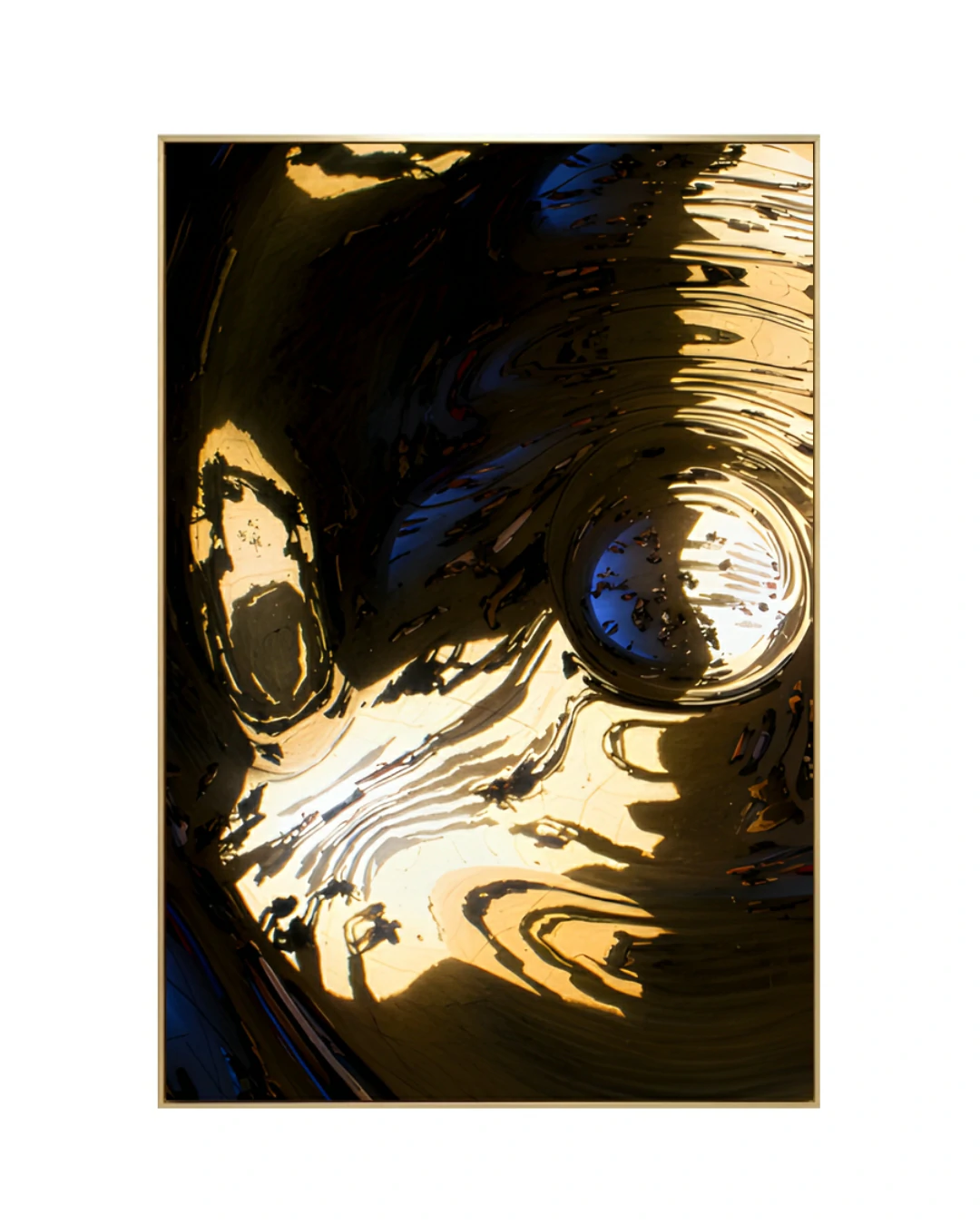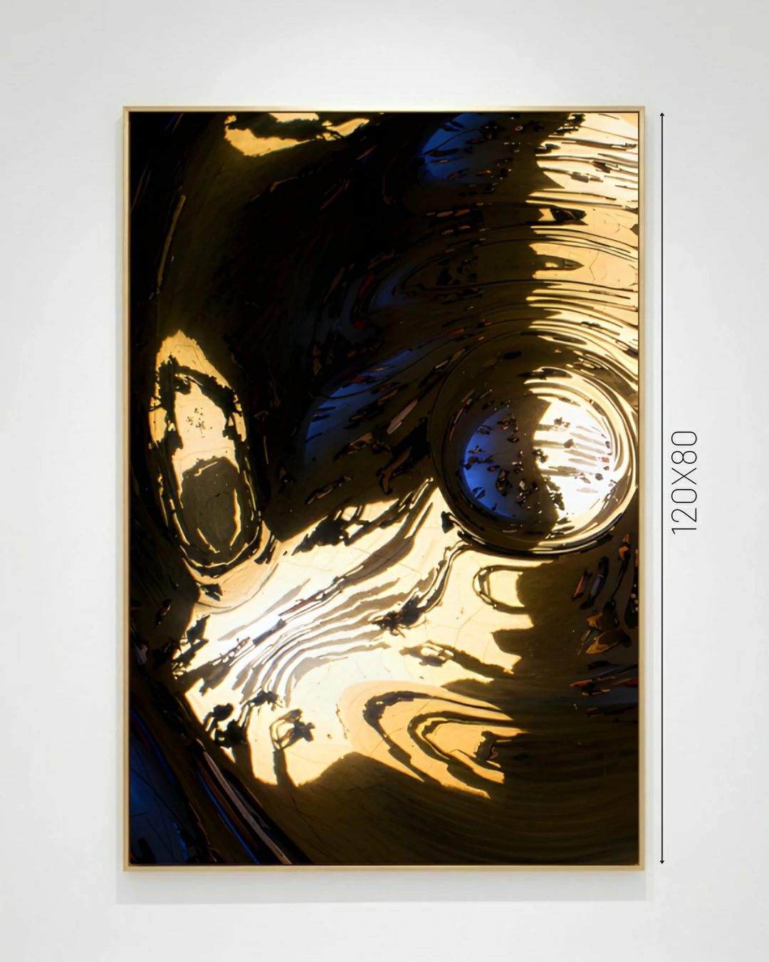 “Reflexos Mágicos” apresenta uma hipnotizante interação de luz e forma, onde tons dourados cintilantes dançam sobre a superfície fluida da escultura Cloud Gate de Anish Kapoor conhecida por seu formato de feijão, em Chicago. A obra revela uma distorção cativante de formas e cores, convidando os espectadores a explorar os detalhes intrincados dentro dos reflexos. Esta peça incorpora uma sensação de profundidade e movimento, tornando-se uma adição marcante a qualquer espaço, perfeita para estimular conversas e reflexões. Esta obra única que atrai o olhar e incita a imaginação enriquece qualquer ambiente.