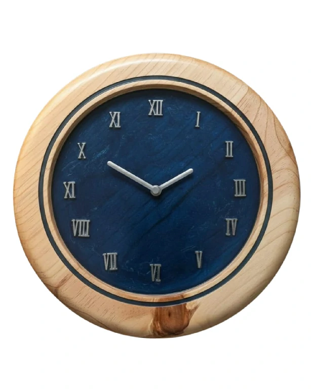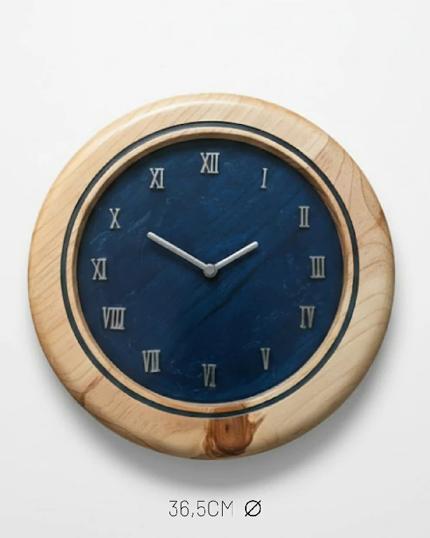 A Dualidade da Matéria: A moldura em madeira clara preserva veios e nós naturais, respeitando a filosofia Wabi-Sabi de celebrar a imperfeição da vida. O contraste com o centro em azul profundo evoca a sensação de um lago silencioso ou do céu noturno.