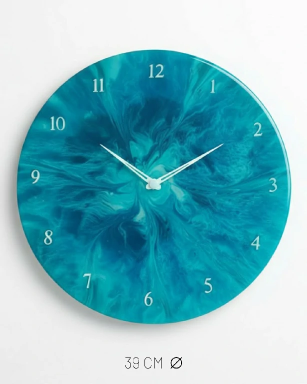 • Precisão e Funcionalidade: Em contraste com a abstração orgânica do fundo, a marcação do tempo é feita por algarismos romanos metálicos e ponteiros minimalistas. Essa escolha mantém a elegância clássica do Atelier, permitindo que a peça funcione tanto como uma obra de arte contemplativa quanto como um item de design utilitário de alto padrão.