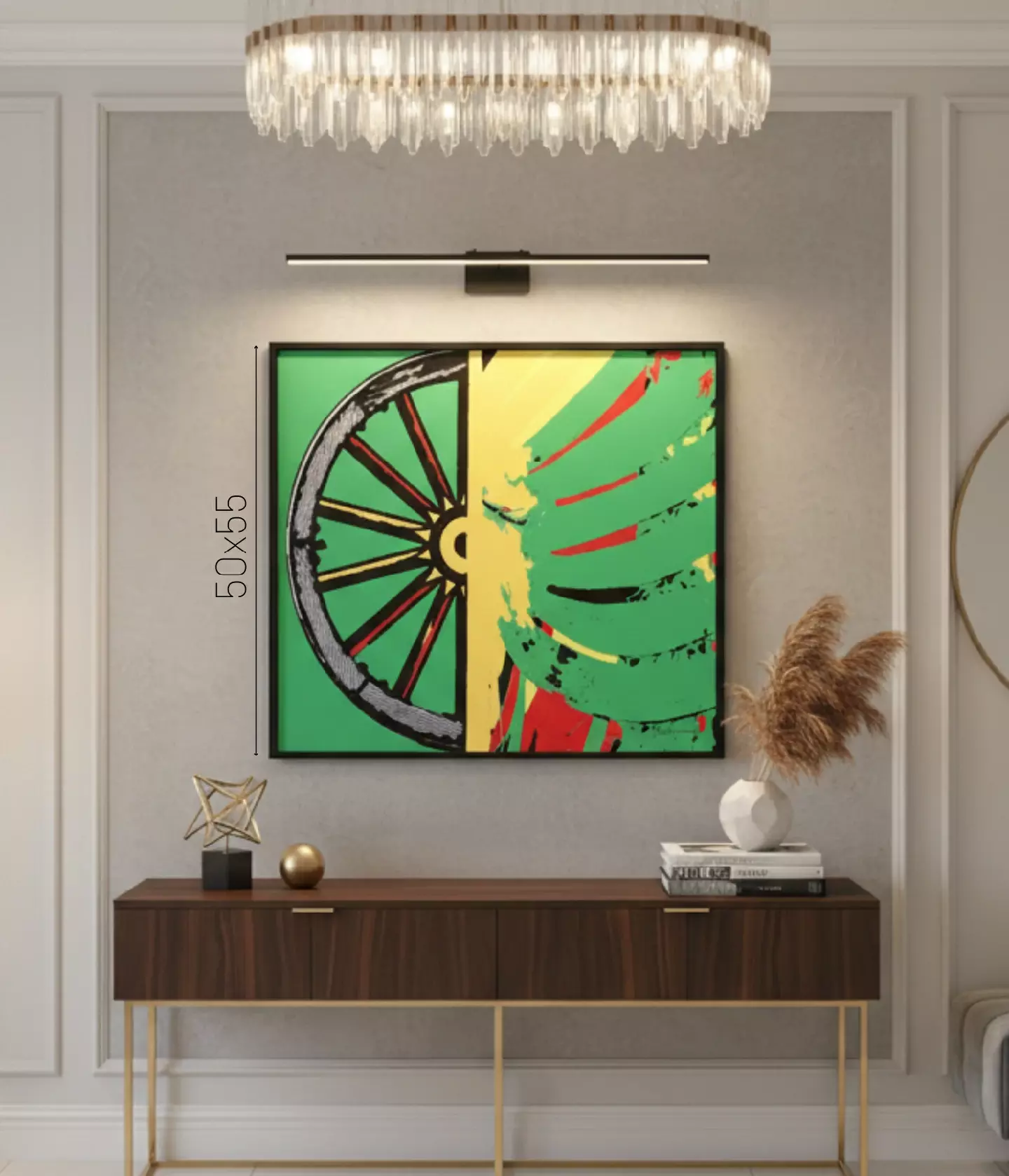 Esta peça é perfeita para quem busca um ponto focal de energia e cor, com uma mensagem profunda.