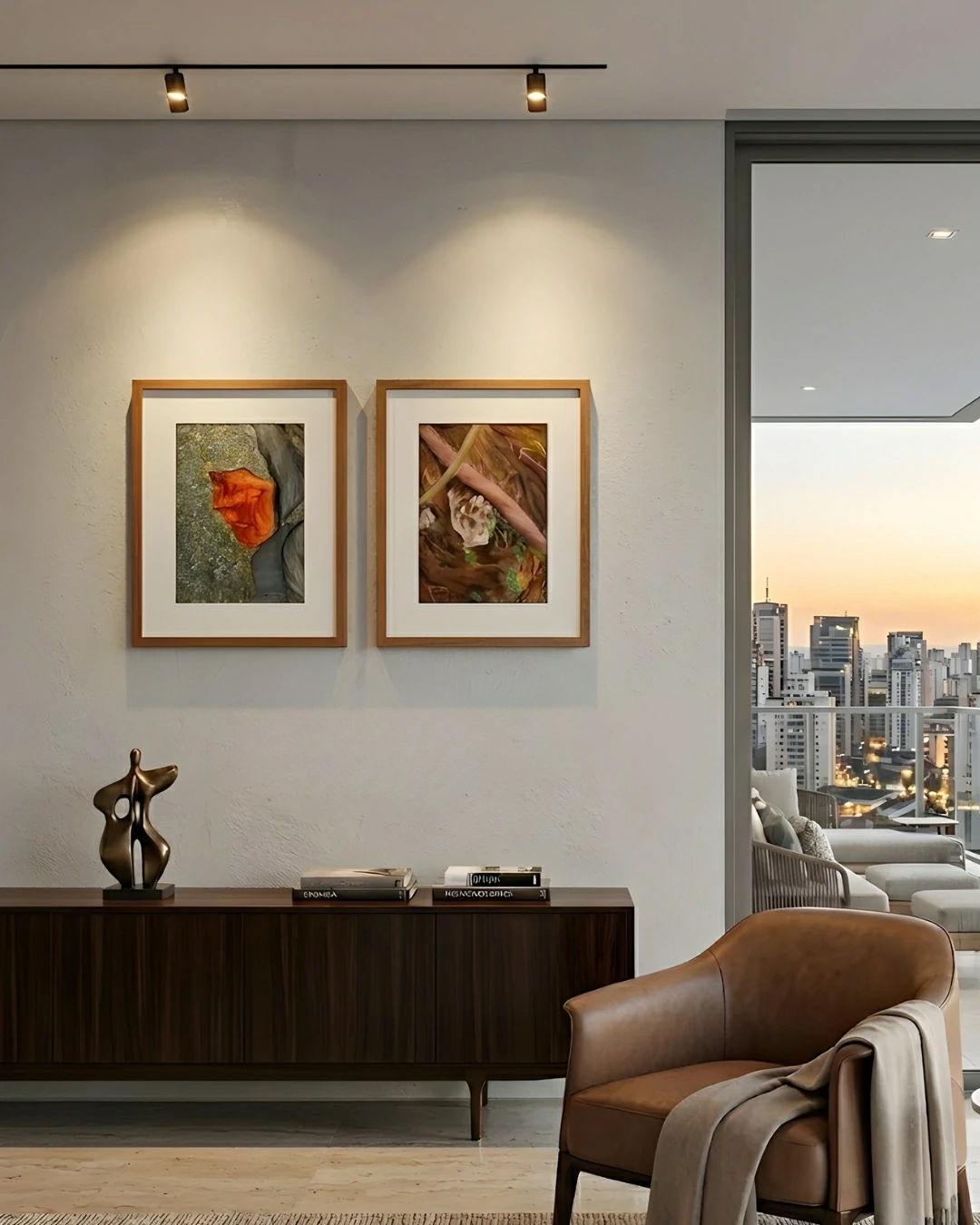 A disposição dos elementos cria uma tensão visual equilibrada, onde a “massa” alaranjada parece romper a superfície cinzenta, como uma joia bruta sendo descoberta ou uma resina milenar (âmbar) que preserva uma essência vital.