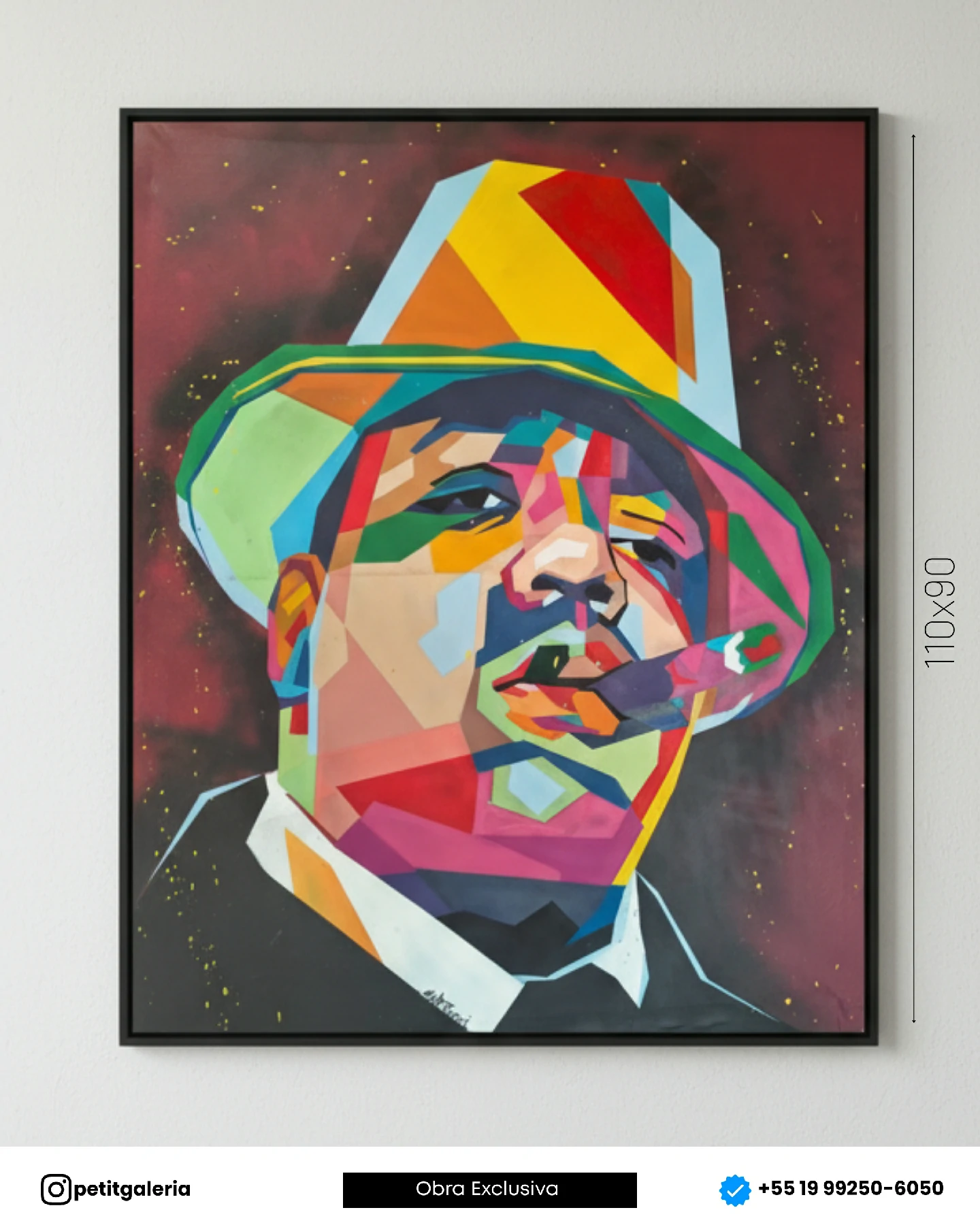 O artista Claudio Martucci @claudio_martucci captura a força e o estilo inconfundível de Biggie com uma incrível técnica de spray em um estilo pop art/geométrico. As cores e as formas dão uma energia única à peça.